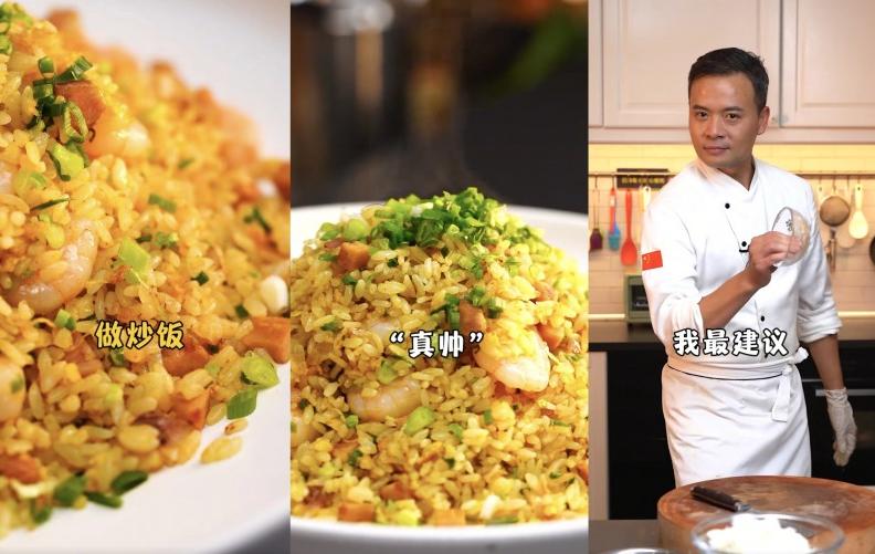 金黄色的蛋液包裹着颗颗分明的米饭,在烧热的铁锅里“刺啦”一声作响。一双稳健的手腕快速颠炒,最后撒上一把翠绿葱花——没有精致的摆盘,没有复杂的镜头语言,只有锅铲与铁锅碰撞的踏实声响,和一碗冒着热气的家常炒饭。这条2021年发布的视频,在抖音上收获了超百万点赞。