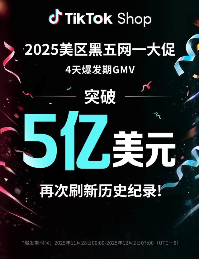 近日,2025 年黑五网一周末为期四天的大促爆发期,TikTok Shop美区整体GMV成功突破五亿美金。与2024年同期相比,本次活动期间在TikTok Shop美国站下单并完成购买的用户数量增长近50%。凸显