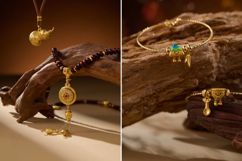 在产品设计上,生肖形象实现东西方美学交融,东方唐马的矫健神韵与西方小飞马的灵动姿态相映成趣,勾勒出跨越文化的生肖魅力;珐琅工艺则玩转出创新巧思,国家宝藏IP的霁红珐琅承载东方宫廷的华贵气韵,莫奈IP的紫色珐琅融入印象派的浪漫笔触,荧光珐琅工艺再升级,让传统技法迸发新潮视觉张力;串珠品类也完成风格碰撞,黄金文玩串珠的东方雅致与腕美转运珠的时尚创新相得益彰,精准触达不同审美偏好的消费群体。而直播大秀中特邀现场演出的氧音映社,以中西乐器的创意合奏打造听觉盛宴,丝竹雅韵与西洋音律交织共鸣,让“有点「东西」”的主题从视觉延伸至听觉维度。