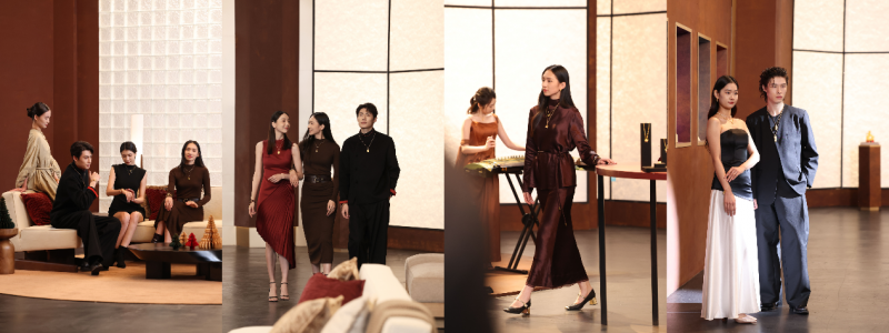 与人们印象中的黄金秀不同,周大生本次的直播策略是“构建体验”。通过“视觉(巨物装置+高定秀场)+互动感(匠人实时演绎工艺)+听觉(中西乐融)”的三维体验设计,将“金喜对撞,有点「东西」”的活动主题转化为具象化的感官体验——高定秀场的时尚氛围传递审美价值,匠人现场演绎的工艺细节彰显品质底气,中西融合的音乐节奏烘托情感共鸣,三者形成合力,让品牌理念变得可触摸、可记忆、可传播。