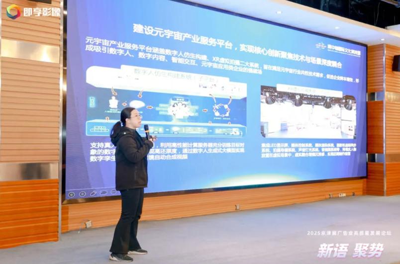 南中轴国际文化科技园招商经理李京毅从产业园区视角展现了区域协同实践。园区以“空间+服务+投资”构建雨林式产业生态,形成“技术研发—创意设计—营销服务—资源整合”完整产业链,展示了产业融合集聚的强大势能。