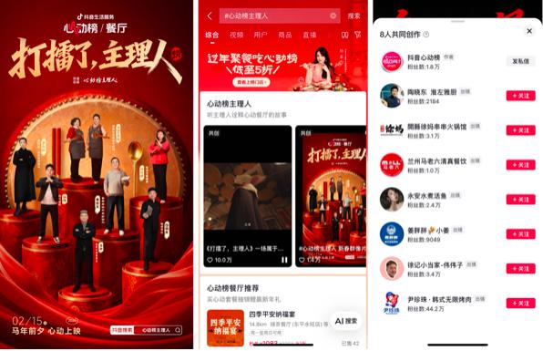 特辑借势抖音、微博双平台的春节热点流量,通过官方定调、营销号解读、餐厅种草、热点植入等多维度引流,强化心动榜餐厅与春节热点的关联,也将餐厅特色与新春聚餐场景深度绑定;同时打通线上线下全链路,搭配心动榜专属套餐、门店物料铺设、常态化直播等动作,形成“内容种草-消费转化”的闭环,让「春节聚会吃心动榜餐厅」的心智深入大众认知。