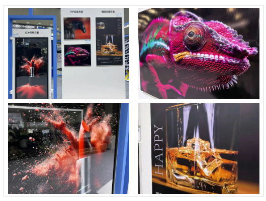 现场展示的广告应用方案同样有更加精致的色彩表现,画面颗粒感更加细腻,整体视觉效果更加高级。即使画面近距离观看也毫无瑕疵,尤其在双波形技术的加持下,画面在边缘过渡上更加锐利,在颜色过渡上更加平滑,力求为终端用户带来更好的产品价值呈现。
