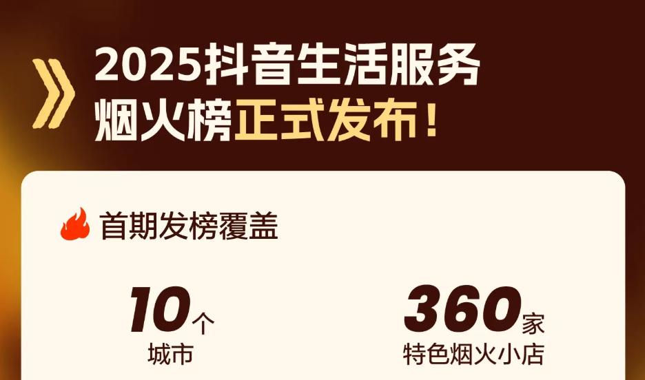 今日,烟火市集暨抖音生活服务首届创作者大会在成都落地,与此同时,大会发布了2025抖音生活服务烟火榜,发榜覆盖10座城市,共计360个小店。